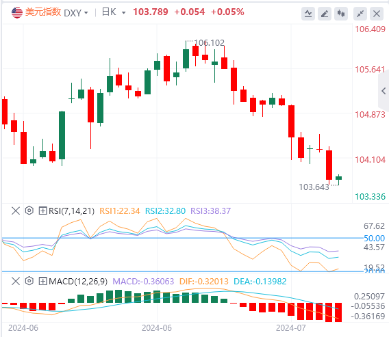 周三,美元指数跌至四个月最低点,最终收跌0.49%,报103.73。截至目前,美元报价103.78。