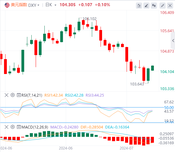 周四,美元指数创下自6月20日以来的最大单日涨幅,最终收涨0.43%,报104.18。截至目前,美元报价104.305。