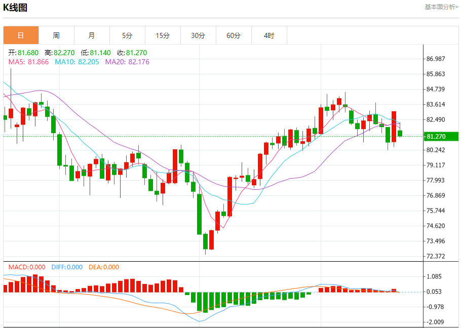 原油市场:截止北京时间20:26,美油下跌,现报81.320,跌幅0.11%。纽市盘前,原油价格现在面临着向关键支撑81.84美元的潜在测试的负面压力,只要价格高于这一水平,我们今天的看涨观点将仍然有效,因为突破这一水平代表着再次回到修正熊市轨道的关键,而价格需要超过83.05美元,以缓解向我们的下一个主要目标84.68美元前进的任务。