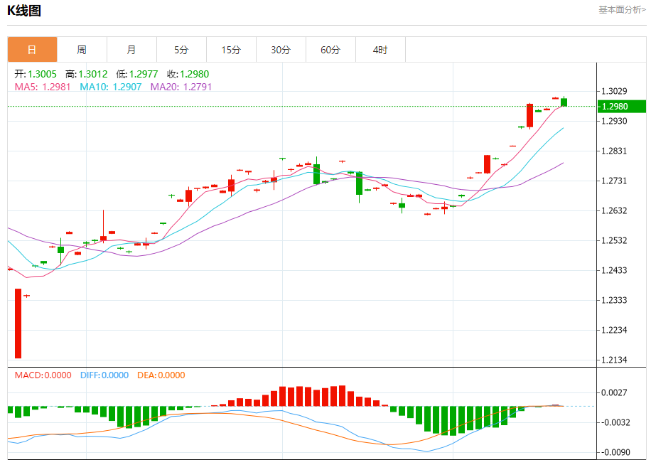 英镑/美元:截止北京时间20:26,英镑/美元下跌,现报1.2983,跌幅0.21%。纽市盘前,GBPUSD价格面临接近第一个关键支撑1.2960美元的负面压力,价格需要在该水平上方盘整,这是延续今天预期看涨趋势的首要条件,其下一个目标位于1.3140美元。