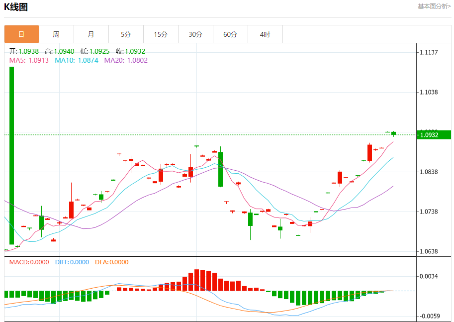欧元/美元:截止北京时间20:26,欧元/美元下跌,现报1.0933,跌幅0.06%。纽市盘前,欧元兑美元价格最近的交易被限制在图表上出现的看涨三角旗模式内,因此,价格需要突破1.0935美元才能激活这一模式的积极影响,随后反弹至我们等待的目标1.1000美元。
