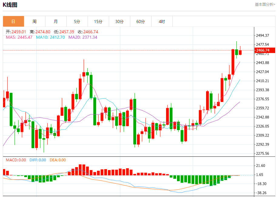 现货黄金:截止北京时间20:26,现货黄金上涨,现报2466.77,涨幅0.34%。纽市盘前,黄金价格向上攀升,随机指标继续提供积极的信号,等待更多的上涨,提醒你我们等待的目标位于2500.00美元。