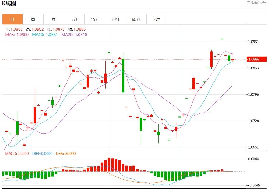 欧元/美元:截止北京时间20:26,欧元/美元上涨,现报1.0888,涨幅0.03%。纽市盘前,欧元兑美元价格显示自上午以来横盘交易,而随机指标继续失去积极势头,只要价格低于1.0925美元水平,我们今天的看跌观点将仍然有效,等待突破1.0880美元水平,为走向1.0840美元和1.0806美元水平开辟道路。