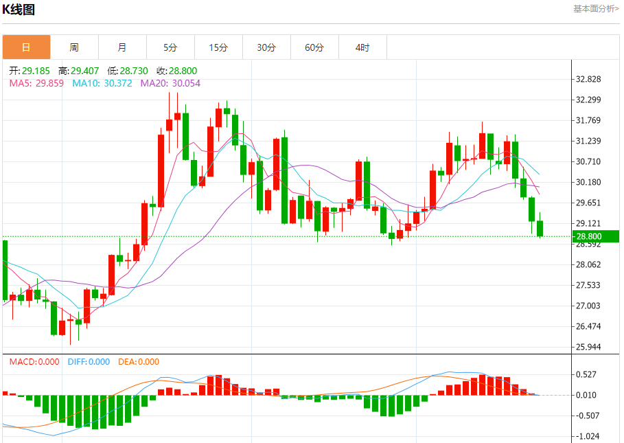 现货白银:截止北京时间20:26,现货白银下跌,现报28.799,跌幅1.31%。纽市盘前,白银价格提供了平静的负面交易,以远离29.30美元的水平,加强了继续修正熊市趋势的预期,并且可以访问代表我们下一个目标的28.55美元,提醒您超过它将延长熊市波直接达到27.62美元。