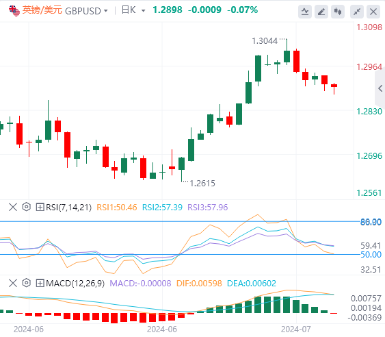 7月24日,周三欧市盘中,美元交投于104.50附近。美国国债收益率的下跌可能给美元带来压力,在撰写本文时,美国国债的2年期和10年期收益率分别为4.44%和4.24%。