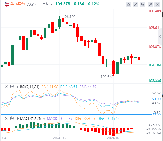 周四,美元指数维持区间震荡,最低触及104.08, 最终收涨0.06%,报104.39。截至目前,美元报价104.27。