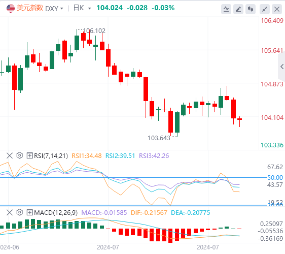 周三,美元指数有所下行,但仍稳站在104关口上方,截至目前,美元指数报价104.02。