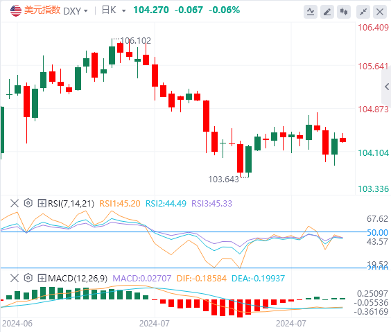 周四,美元指数维持区间震荡,盘中一度跌近104,截至目前,美元报价104.27。