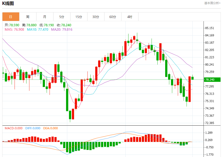 原油市场:截止北京时间20:11,美油上涨,现报78.300,涨幅0.50%。纽市盘前,原油价格在78.66美元上方保持稳定,目前显示出一些轻微的多头倾向,暗示将恢复主要的多头趋势,其下一个目标位于80.08美元,并在突破前一水平后延伸至81.84美元,提醒您牛市的持续需要持有78.66美元以上。