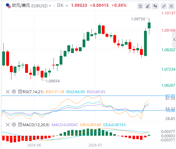 在美国疲软的劳动市场数据引发美元大跌后,欧元兑美元周五上涨超过1%。该货币对周一早盘保持了看涨势头,目前交投于1.0950以上的3月初以来最高水平。