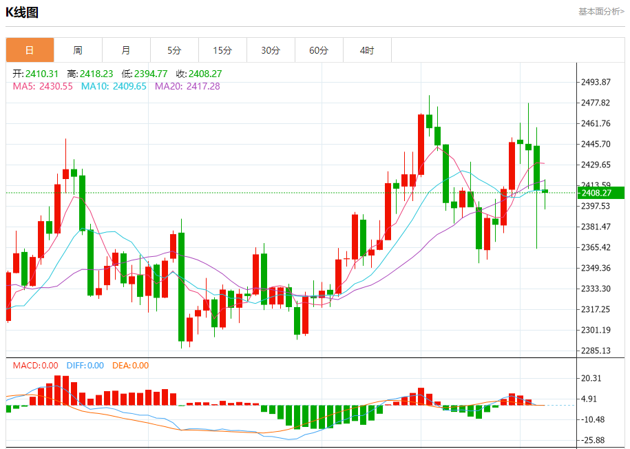 现货黄金:截止北京时间20:20,现货黄金下跌,现报2408.20,跌幅0.07%。纽市盘前,黄金价格在EMA50附近波动,它需要超越2416.00美元的小阻力,以缓解今天恢复预期牛市的任务,其下一个目标位于2450.00美元,其次是2483.40美元。