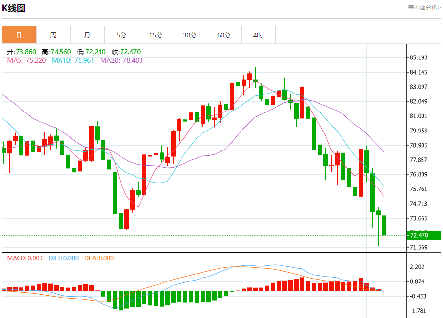 原油市场:截止北京时间20:20,美油下跌,现报72.420,跌幅0.71%。纽市盘前,原油价格明显恢复其负面交易,接近73.00美元关口,以支持今天预期的熊市趋势的延续,其目标从72.64美元开始,并在突破前一水平后延伸至70.45美元。