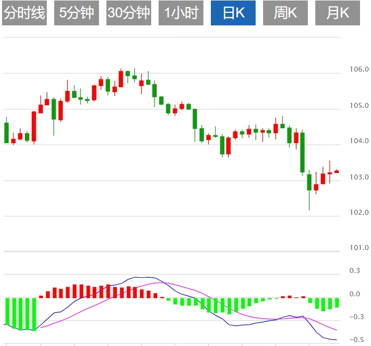 美元指数:截止发稿,美元指数现报103.27,日内0.05%。美元(USD)在经历了两天的反弹后,周四稳定在103.00附近。截至8月3日当周的强劲初请失业金人数数据正在帮助美元获得牵引力,因为市场正在等待对美国经济的更深入洞察。考虑到所有数据,美国整体经济前景仍然乐观,增长仍高于趋势水平。这表明,市场可能再次高估了激进的宽松政策,就像本周初所做的那样。相对强弱指数 (RSI) 仍低于 50,移动平均收敛散度 (MACD) 正在触及较低的红色柱线。随着本周的展开,支撑位在103.00、102.50和102.20,阻力位在103.50和104.00。突破最后一个阻力位将改善前景,买家将获得 20 天简单移动平均线 (SMA)。