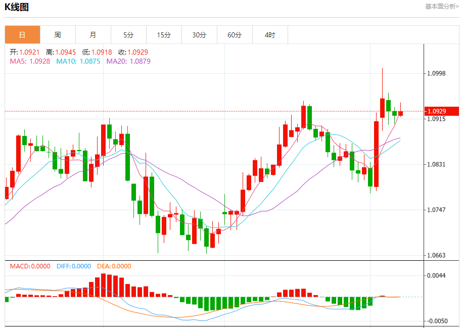 欧元/美元:截止北京时间20:22,欧元/美元上涨,现报1.0929,涨幅0.07%。纽市盘前,欧元兑美元价格显示出一些看涨倾向,以测试关键阻力1.0947美元,只要价格低于该水平,我们今天的看跌观点将仍然有效,随机到达超买区,等待恢复负面交易,以访问1.0800美元作为下一个主要目标。