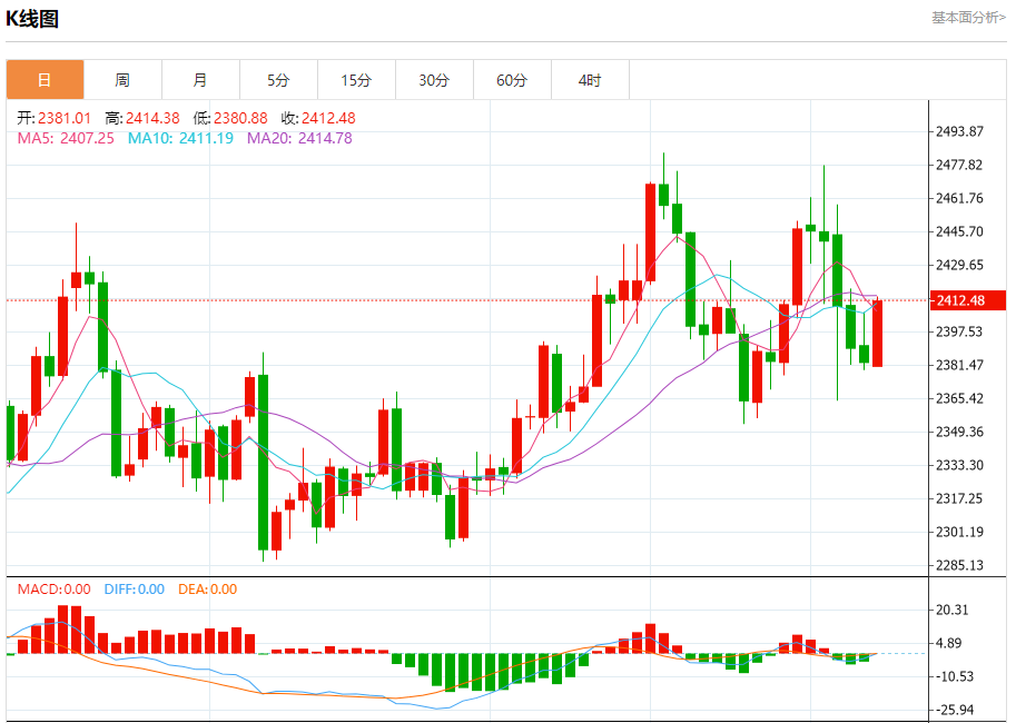 现货黄金:截止北京时间20:22,现货黄金上涨,现报2412.48,涨幅1.24%。纽市盘前,黄金价格自上午以来没有表现出任何强劲的走势,继续围绕主要的看涨趋势线移动,因此,直到现在我们都没有改变中立态度,等待突破2380.00美元的支撑或突破2405.00美元的阻力,以明确检测下一个目标。