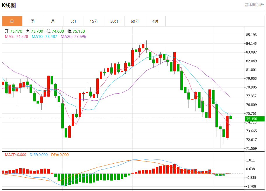 原油市场:截止北京时间20:22,美油下跌,现报75.120,跌幅0.13%。纽市盘前,原油价格正在测试关键支撑基础75.00美元,正如我们今天早上提到的,价格需要保持在这一水平以上,以保持今天的修正看跌趋势有效,因为打破它将推动价格再次回到主要看跌轨道,而下一个修正目标位于76.86美元。
