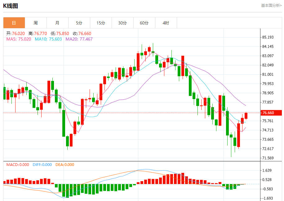 原油市场:截止北京时间20:20,美油上涨,现报76.640,涨幅0.59%。纽市盘前,自上午以来,原油价格显示出横盘和紧张的交易,停留在76.00美元关口上方,因此,今天的预期看涨趋势没有改变,其目标是从突破76.86美元开始,为走向78.35美元开辟道路,这代表着我们的下一个主要目标,注意到突破76.10美元将停止牛市,并在任何新的积极尝试之前推动价格测试75.00美元区域。