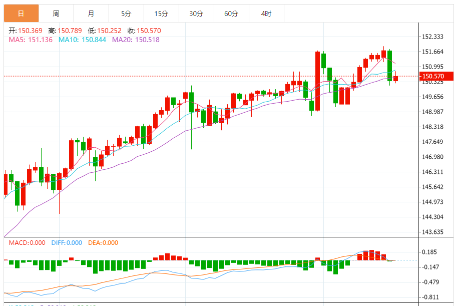 日元:美元/日元下跌,收报150.375,跌幅0.89%。技术面上,汇价上行的初步阻力位于151.536,进一步阻力位151.773,关键阻力位于152.158;汇价下行的初步支撑位于150.914,进一步支撑位于150.529,更关键支撑位于150.292。