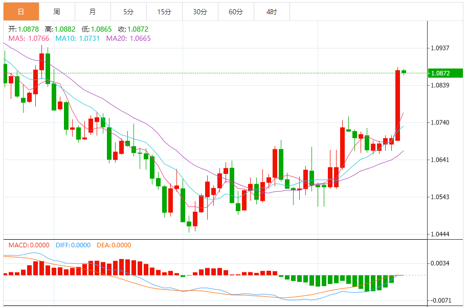 欧元:欧元/美元上涨,收报1.06928,涨幅1.68%。技术面上,汇价上行的初步阻力位于1.0706,进一步阻力位于1.0748,关键阻力位于1.0771;汇价下行的初步支撑位于1.0641,进一步支撑位于1.0618,更关键支撑位于1.0576。