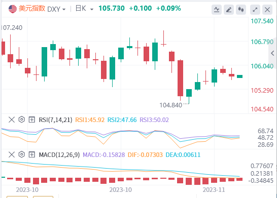 周一美元指数上逼106关口后转跌,最终收跌0.132%,报105.68美债收益率有所回落,10年期美债收益率收报4.64%;对美联储政策利率更敏感的两年期美债收益率收报5.033%。截止目前,美元报价105.73。