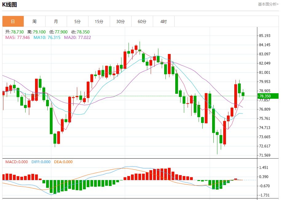 原油市场:截止北京时间20:18,美油上涨,现报78.350,涨幅0.00%。纽市盘前,原油价格停留在79.00美元附近,等待获得积极的动力,帮助推动价格恢复今天预期的牛市,其目标是从79.84美元开始,并在突破前一水平后延伸至80.70美元。