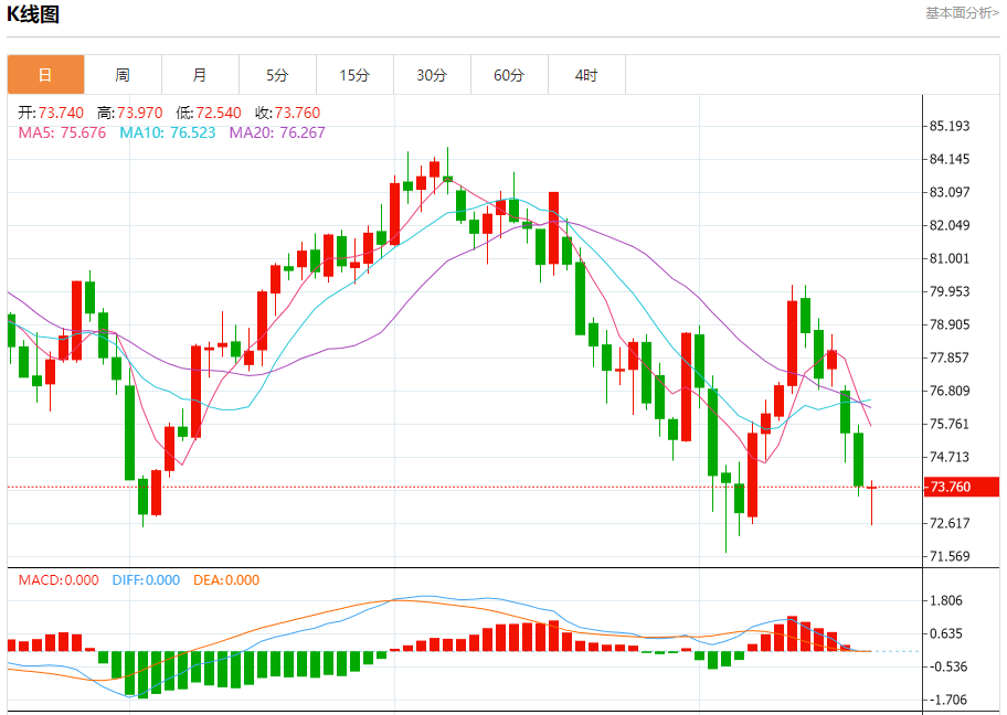 原油市场:截止北京时间20:20,美油上涨,现报73.790,涨幅0.18%。纽市盘前,原油价格持续下跌,以超过我们在74.00美元的第一个扩展目标,并接近73.60美元的第二个目标,我们预计熊市偏见的持续将达到新的负面目标,延伸至72.85美元,等待价格稳定在75.00美元以下的情况下,在今天剩余时间内出现更多预期的下跌。