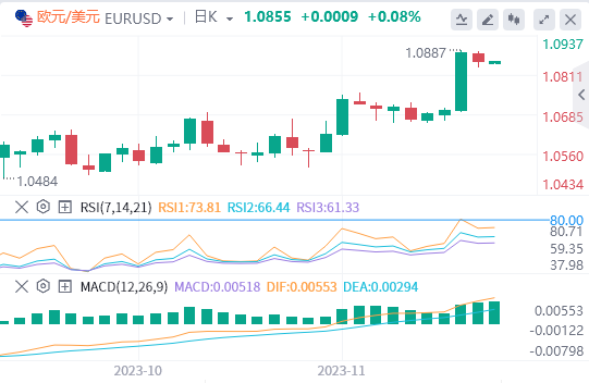 欧元:截止发稿,欧元/美元徘徊于1.0855附近。昨日欧元/美元下跌,收报1.0849,跌幅0.28%。周三公布的欧元区工业生产数据差於预期,欧元区9月季调後工业产出月率为-1.1%,比上月的0.6%大幅下滑,也低於预期的-0.7%。数据不佳后,欧元/美元在周三的交易中总体震荡,欧元交易员对进一步买入欧元犹豫不决。技术面上,欧元/美元周二反弹后突破了位於1.0800关口的200日SMA,但周三看涨动能遭到拉空,跌至1.0900价位附近。买盘有可能被打压至长期移动均线,1.0625水平以来的看涨50日均线目前提供了技术支撑。若延续看涨的邻近阻力将是8月下旬震荡区间1.0950关卡。