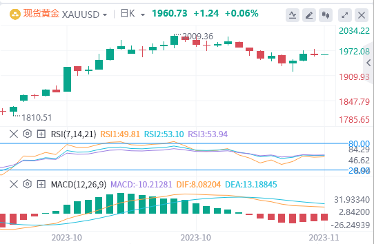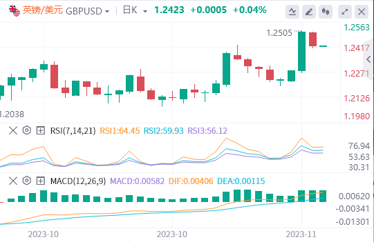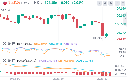 美元指数:截止发稿,美元指数交投于104.35附近。美元在周三的交易日有所上涨,受10月份美国零售销售数据的推动,这在一定程度上让投资者感到担忧,因为美联储官员可能认为这对通胀进展构成威胁。技术面上,日线图表明,美元指数的技术前景从中性到看跌,牛市在周二的交易日中失去了重要地位。在中线以下呈下降趋势的情况下,RSI显示出看跌情绪,而MACD直方图显示出较大的红条。缩小来看,尽管空头有所斩获,并将指数推至20天SMA以下,但它仍高于100天和200天的SMA,这表明多头在更大的时间范围内占据主导地位。