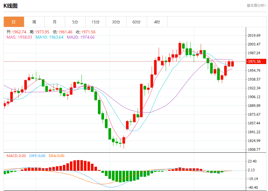 现货黄金:截止北京时间21:18,现货黄金上涨,现报1971.44,涨幅0.43%。纽市盘前,黄金价格显示出更多的看涨倾向,接近我们等待的第一个积极目标1975.00,并且似乎有机会继续上涨超过这一水平,并打开访问2000.00作为下一个主要目标的道路。