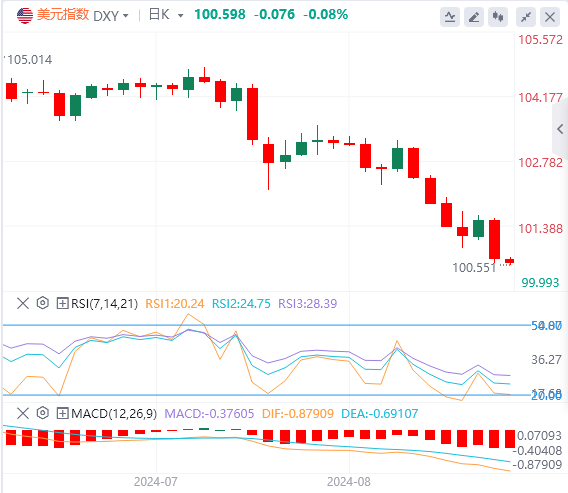 美元指数:截止发稿,美元指数交投于100.59附近。鲍威尔表示,通胀已显着下降,使经济更接近美联储2%的目标。鲍威尔观察到劳动力市场明显降温,表明经济不再过热。美联储主席还指出,风险平衡已经发生变化,通胀风险降低,但对就业的担忧加剧。技术面上,美元指数的技术前景仍然看跌。然而,买家一直在尝试开启上升趋势。该指数仍低于其20天、100天和200天简单移动平均线(SMA),表明看跌偏见。相对强弱指数(RSI)低于30,表明持续且过度的抛售压力。移动平均收敛散度(MACD)仍处于负值区域,带有红色条形。