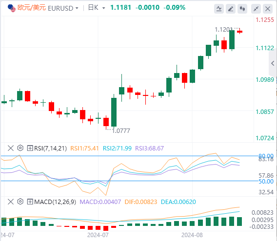 欧元/美元在周末前积聚了看涨势头,并达到一年多来的最高水平1.1200。该货币对周一早些时候仍处于盘整阶段,最后一次交易于1.1180附近。