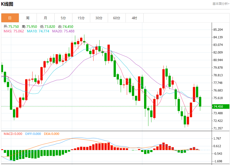 原油市场:截止北京时间20:22,美油下跌,现报74.390,跌幅1.51%。纽市盘前,原油价格显示新的负面交易,以达到75.00美元的等待目标阈值,并且似乎有机会突破这一水平,并延长熊市波,以达到73.95美元,然后是72.04美元区域,作为下一个主要目标。