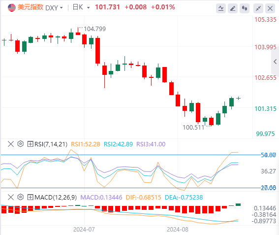 上周五,美元指数小幅上涨0.36%,报101.73,截至目前,美元报价101.73。