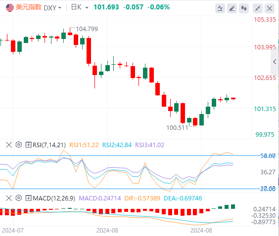 9月4日,北京时间周三亚市早盘,美元指数徘徊在101.69附近。周二,因美国8月ISM制造业PMI略低于预期,美元指数涨势受限,最终收涨0.10%,报101.73。基准的10年期美债收益率收报3.8360%;对货币政策更敏感的两年期美债收益率最终收报3.8730%。现货黄金连续三日下跌,在欧盘短暂冲击2500失败后逼近2470美元,后因美国疲软的经济数据而收窄跌幅,最终收跌0.26%,报2492.60美元/盎司。现货白银最终收跌1.68%,报28.05美元/盎司。有迹象表明利比亚石油供应干扰有望结束,以及受美国夏季驾车需求疲软的拖累,国际油价暴跌。WTI原油收跌5.25%,报70.13美元/桶;布伦特原油最终收跌4.63%,报73.69美元/桶。