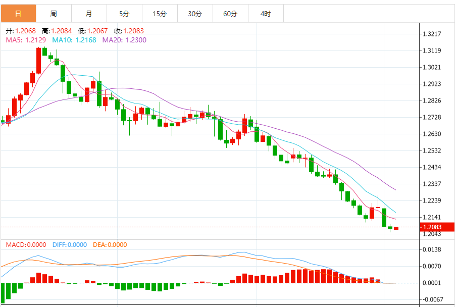 英镑:英镑/美元下跌,收报1.2076,跌幅0.08%。技术面上,汇价上行的初步阻力位于1.2096,进一步阻力位于1.2124,关键阻力位于1.2146;汇价下行的初步支撑位于1.2046,进一步支撑位于1.2024,更关键支撑位于1.1996。