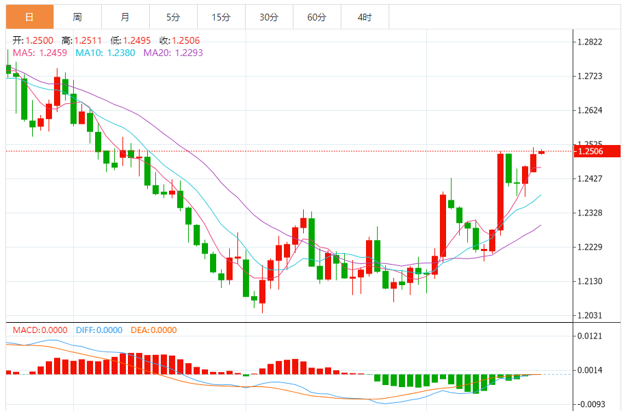 英镑:英镑/美元上涨,收报1.2504,涨幅0.41%。技术面上,汇价上行的初步阻力位于1.2533,进一步阻力位于1.2562,关键阻力位于1.2605;汇价下行的初步支撑位于1.2461,进一步支撑位于1.2418,更关键支撑位于1.2389。