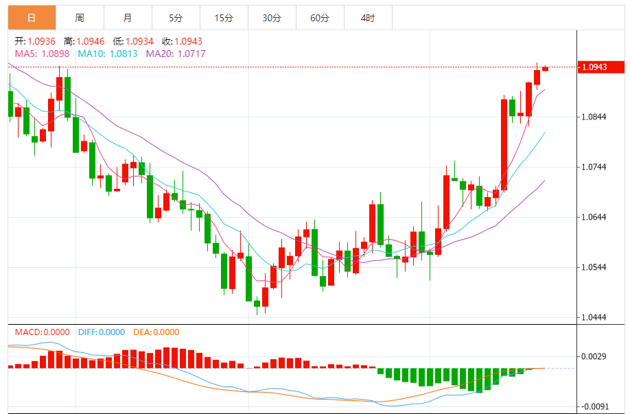 欧元:欧元/美元上涨,收报1.0940,涨幅0.29%。技术面上,汇价上行的初步阻力位于1.0962,进一步阻力位于1.0984,关键阻力位于1.1016;汇价下行的初步支撑位于1.0908,进一步支撑位于1.0876,更关键支撑位于1.0854。