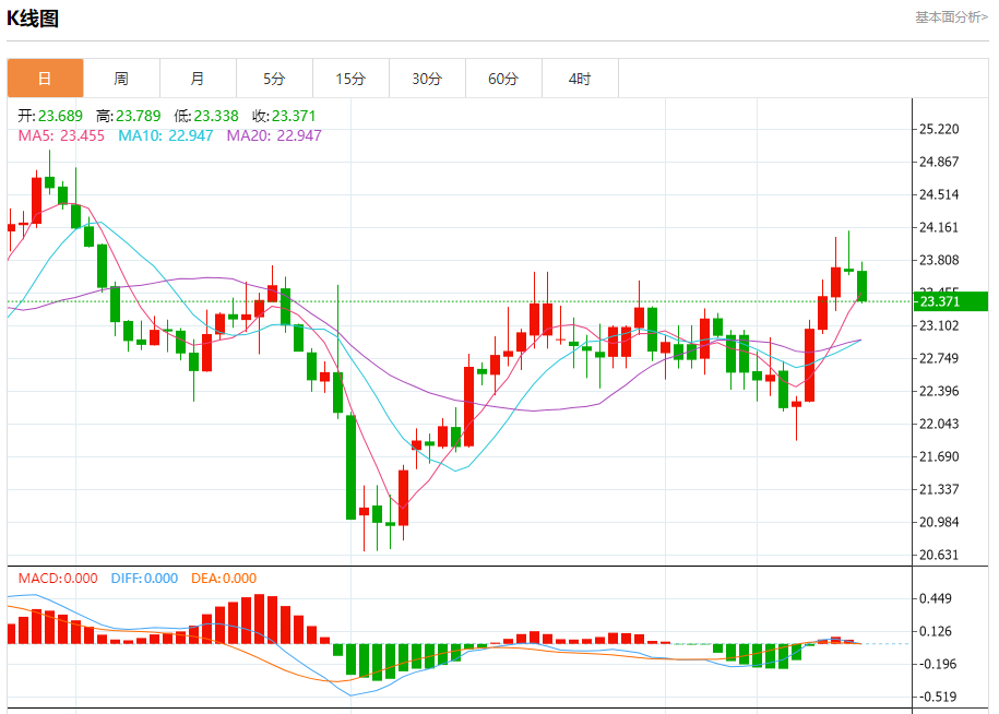 现货白银:截止北京时间21:18,现货白银下跌,现报23.370,跌幅1.36%。纽市盘前,白银价格显示出额外的负面交易,将远离23.70水平,并加强了今天剩余时间继续看跌的可能性,主要朝着23.00水平前进。