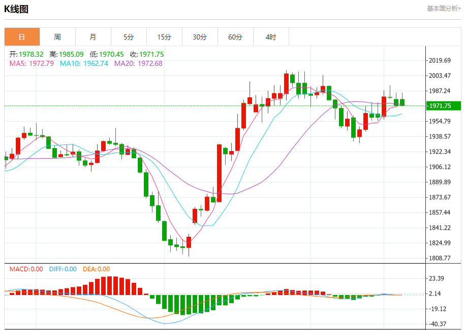 现货黄金:截止北京时间21:18,现货黄金下跌,现报1971.90,跌幅0.43%。纽市盘前,黄金价格在关键支撑1975.00波动,除了EMA50提供的积极支持外,随机指标继续在四小时的时间框架内提供积极的信号,等待向2000.00和2009.30水平前进,这代表着我们的下一个主要目标,提醒你突破1975.00和1962.35将使价格再次处于修正熊市压力下。
