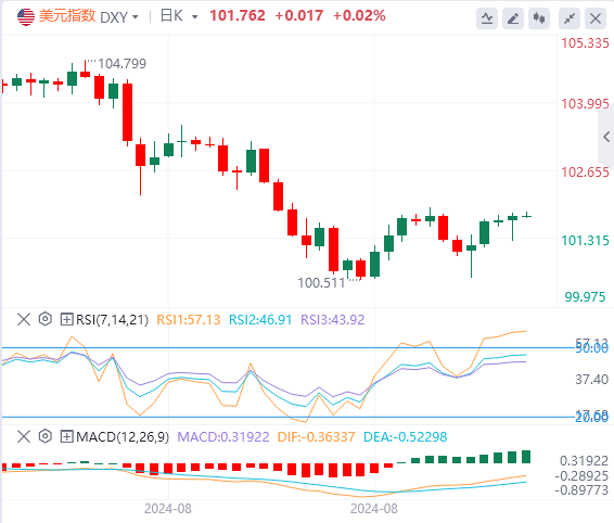周三,美元指数先跌后涨,并一度涨至101.82的日内高点,而后陷入震荡,截至目前,美元报价101.76。