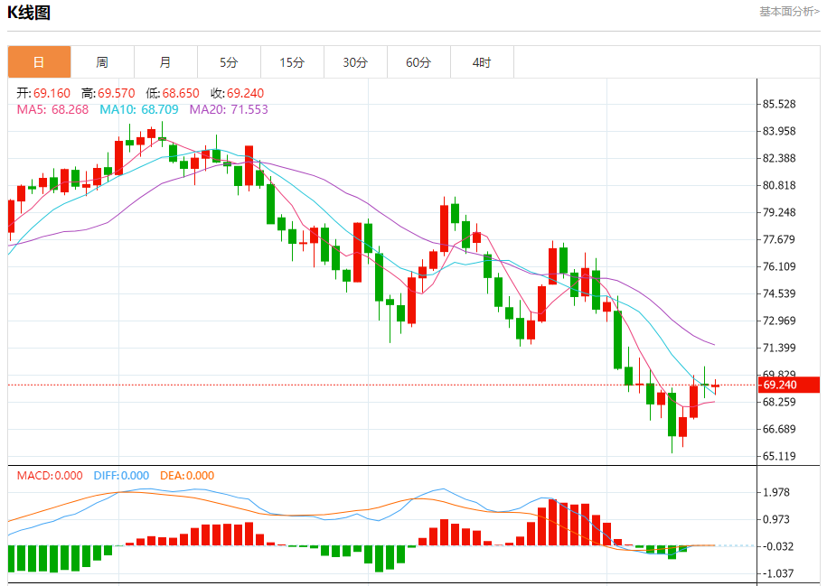 原油市场:截止北京时间20:23,美油上涨,现报69.210,涨幅0.83%。纽市盘前,原油价格显示出平静的看涨倾向,试图恢复今天预期的看涨趋势,等待突破70.43美元,以确认反弹至71.95美元,随后是73.47美元水平,作为下一个正站。