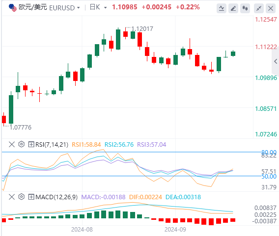 欧元/美元收盘价与上周收盘基本持平。该货币对当天小幅走高,周一欧洲早盘高出1.1100几个点。