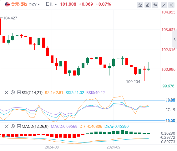 周三,美元指数呈V型走势,其盘中先大幅下挫,并一度逼近100大关,截至目前,美元报价101。