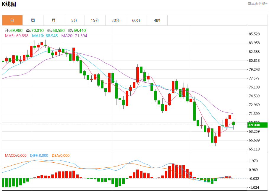 原油市场:截止北京时间20:21,美油下跌,现报69.430,跌幅0.74%。纽市盘前,原油价格正在测试70.44美元的支撑线,这促使人们在即将到来的交易中保持谨慎,因为价格需要在这一水平以上盘整,以保持未来一段时间的看涨趋势,目标是71.95美元作为下一站,注意到确认突破70.44美元将使价格面临额外的负面压力,以开始其下一个主要目标达到68.55美元的熊市波。