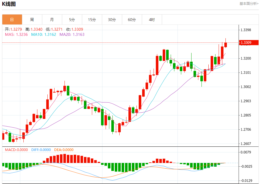 英镑/美元:截止北京时间20:21,英镑/美元上涨,现报1.3310,涨幅0.20%。纽市盘前,GBPUSD价格恢复积极交易,显然是为了测试看涨通道的阻力线,等待更多的上涨,以实现我们的下一个积极目标1.3335美元,随后是1.3400美元,由EMA50支撑,继续从下方支撑价格,提醒你牛市的持续取决于1.3265美元以上的价格稳定性。