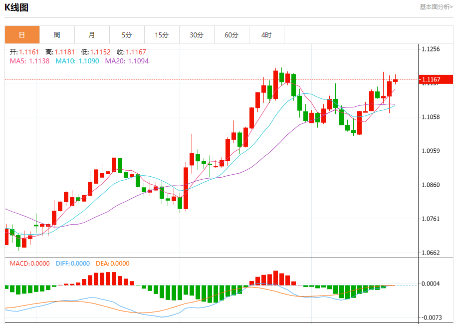 欧元/美元:截止北京时间20:21,欧元/美元上涨,现报1.1168,涨幅0.06%。纽市盘前,欧元兑美元价格显示了新的积极交易,我们需要获得积极的势头,以帮助推动价格继续上涨,并实现我们第一个等待的目标1.1200美元,突破该目标代表着反弹至1.1270美元和1.1350美元水平的关键。