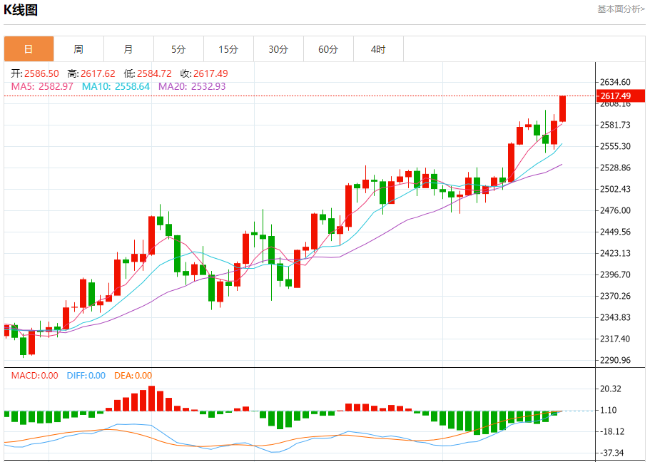 现货黄金:截止北京时间20:21,现货黄金上涨,现报2617.49,涨幅1.19%。纽市盘前,黄金价格再次上涨,达到我们等待的目标2600.00美元,并突破该目标,以确认未来几个交易日看涨趋势的延续,并在日内和短期基础上实现更多预期的上涨,提醒您我们的下一站位于2634.50美元。