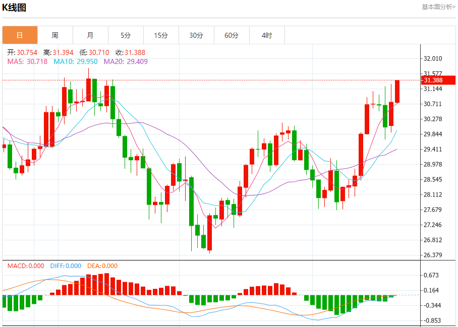 现货白银:截止北京时间20:21,现货白银上涨,现报31.397,涨幅2.06%。纽市盘前,白银价格停留在31.00美元上方,等待获得积极的动力,以帮助推动价格继续上涨并实现更多积极的目标,提醒您我们的下一个目标位于31.70美元,而持有31.00美元上方代表着建议的看涨趋势继续的主要条件。