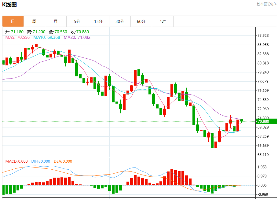 原油市场:截止北京时间20:21,美油下跌,现报70.830,跌幅0.46%。纽市盘前,原油价格在71.95美元附近徘徊,自上午以来没有表现出任何强劲的走势,因此,今天的预期看涨趋势没有改变,这取决于价格在70.44美元上方的稳定性,提醒您我们等待的目标从73.48美元开始,并在突破前一水平后延伸至75.36美元。