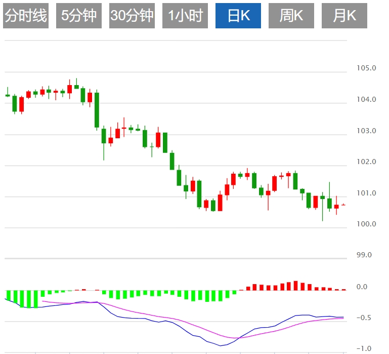 美元:截止发稿,美元指数徘徊于100.26附近,衡量美元兑一篮子六种货币价值的美元指数周二在世界大型企业联合会 (Conference Board) 的消费者信心数据发布后录得一些下跌。与此同时,美联储 (Fed) 官员似乎正试图抵制市场激进的鸽派押注。技术上,美元指数的技术分析显示看跌趋势,相对强弱指数 (RSI) 位于 40 左右,移动平均收敛散度 (MACD) 印有递减的绿色条。由于该指数低于 20,100 天和 200 天简单移动平均线 (SMA),技术前景仍然明显看跌。突破 20 日均线将在一定程度上改善前景。撑位在100.50、100.30和100.00,阻力位在101.00、101.30和101.60。